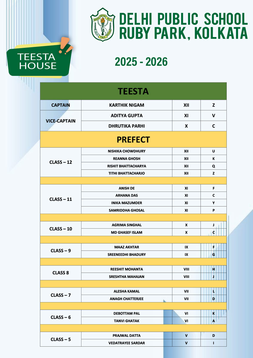 We are glad to announce the selected list of House Prefect for session 2025-26